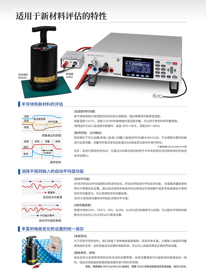 使用方法多種多樣,最大1000V,最快6.4ms高阻計 最快6.4ms的高速測量 輸出電壓1000V 電阻2×10^19Ω最大顯示 電流0.1fA分辨率