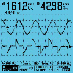 自動生成電壓波形(通道 A)、電流波形(通道 B)或功率(通道 A x 通道 B)。