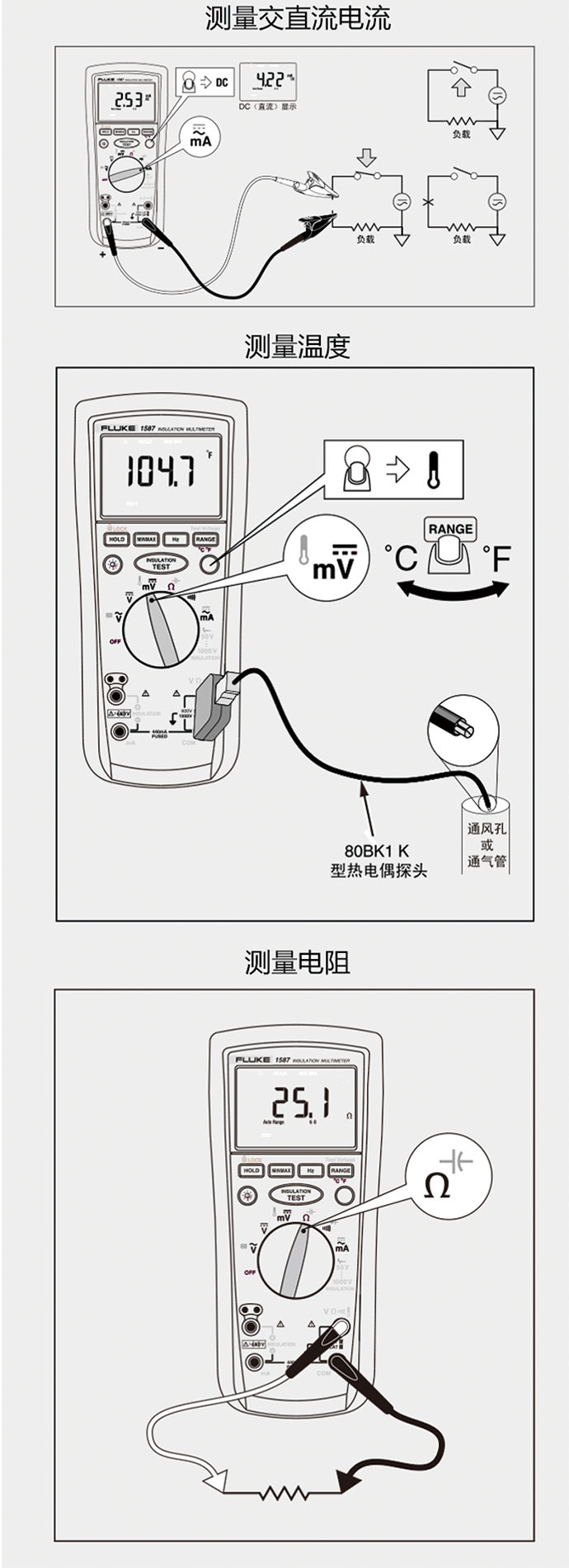 Fluke 1587 絕緣萬用表把數字絕緣測試儀和功能齊全、高精度的 RMS 數字萬用表合二為一.