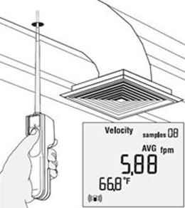 - 細長的伸縮式探棒可方便得用于測量管道及通風口的風速